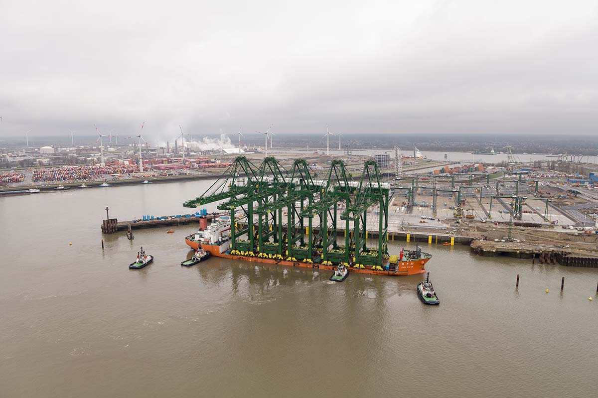 PSA Antwerp ontvangt vijf nieuwe mega STS-kranen op Europa Terminal