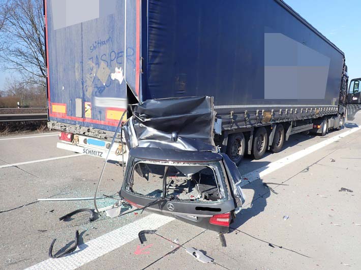 Bij de aanrijding werden het dak en de achterklep van de Mercedes stationwagen aan de rechterzijde van de oplegger afgescheurd. De personenauto schoof onder de oplegger door en kwam pas na ongeveer 100 meter op de vluchtstrook tot stilstand. Hulpverleners konden ter plaatse alleen nog het overlijden van de bestuurder vaststellen. De brandweer heeft het lichaam uit het zwaar beschadigde voertuig geborgen.