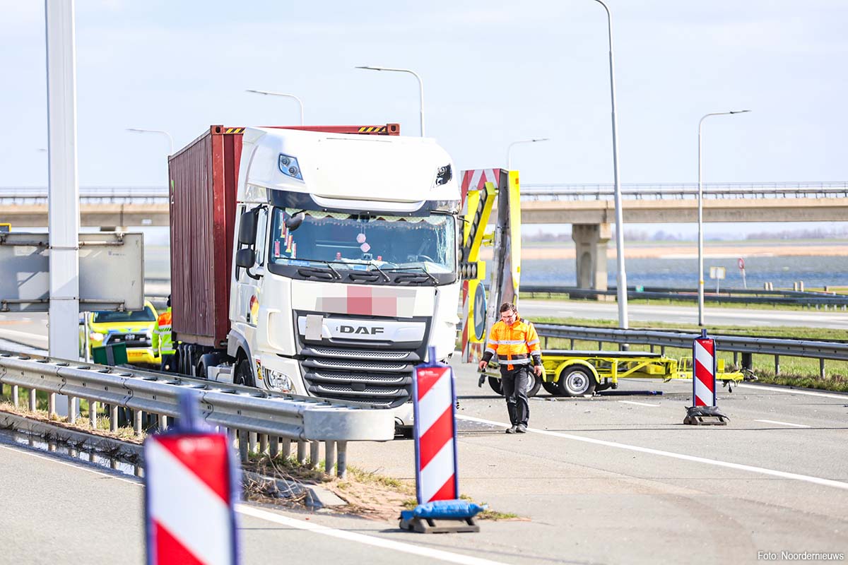 AFSLUITDIJK – Een vrachtwagen is maandagmiddag aan de Friese kant van de Afsluitdijk tegen een pijlwagen aangereden. Door de aanrijding is de A7 richting Amsterdam afgesloten.