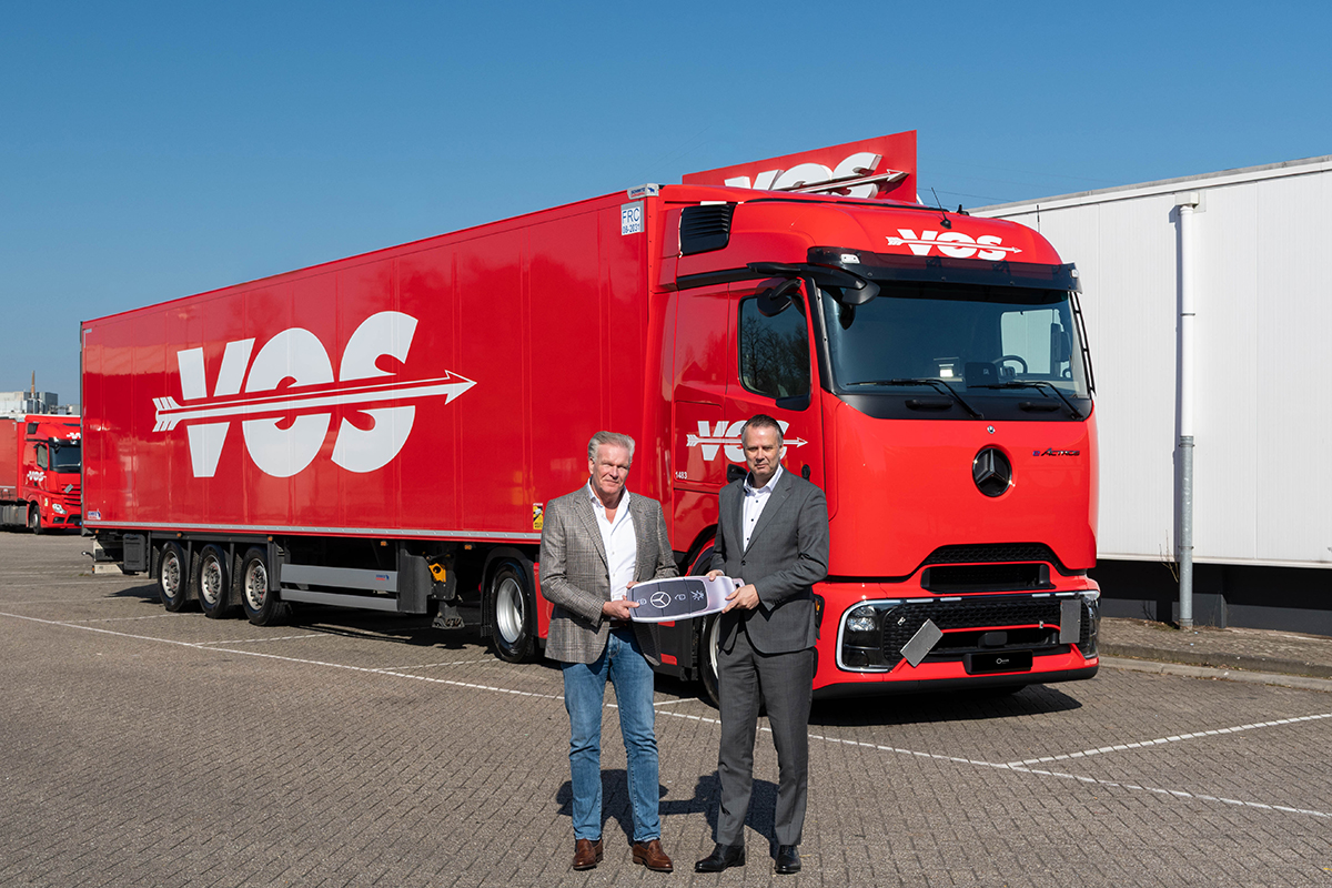 DEVENTER – Vos Transport Group heeft acht volledig elektrische Mercedes‑Benz eActros 600 trucks in gebruik genomen. Het gaat om twee bakwagens en zes trekkers, die woensdag feestelijk werden afgeleverd door Wensink Trucks. Met de investering zet het transportbedrijf een nieuwe stap in de verdere verduurzaming van zijn wagenpark.