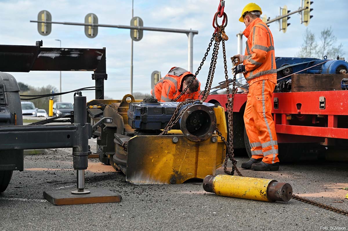 De politie kwam ter plaatse en maakt vermoedelijk proces-verbaal op. Inmiddels is een kraanwagen ingezet om het zware onderdeel te bergen.