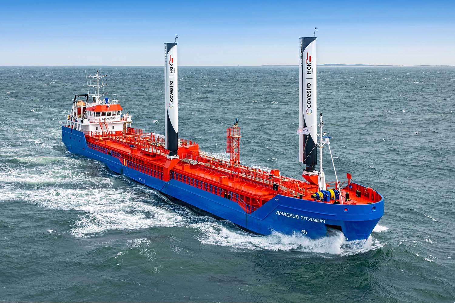 HARLINGEN/DUISBURG – Covestro en HGK Shipping zetten een nieuwe stap richting duurzamer transport. Het kustvaartuig “Amadeus Titanium” vaart sinds eind maart 2026 met een innovatief windondersteuningssysteem, dat zorgt voor een brandstofbesparing van circa 10 procent en een lagere CO₂-uitstoot.