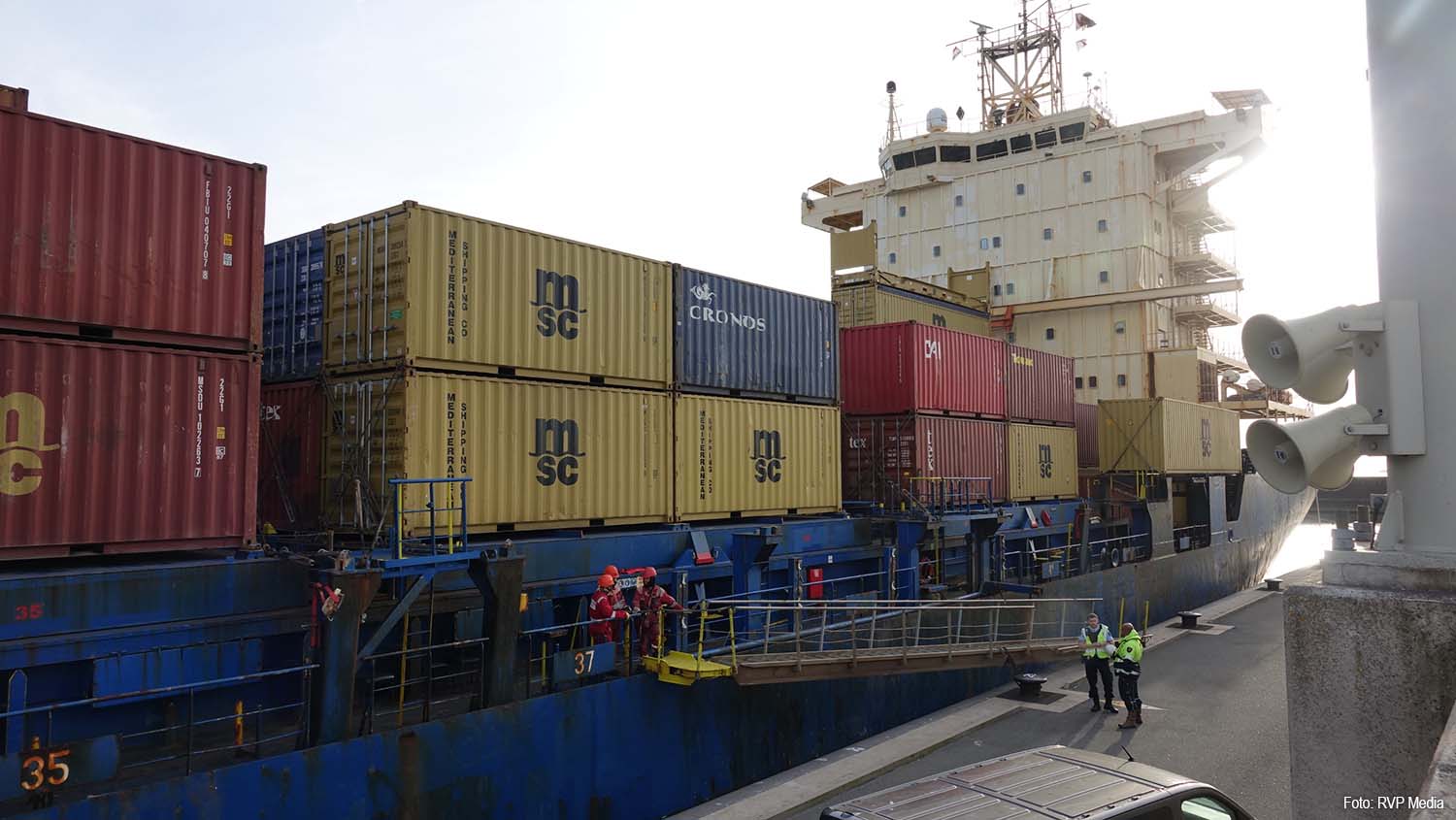 IJMUIDEN – De Koninklijke Marechaussee heeft zondag vier verstekelingen van een containerschip gehaald in de haven van IJmuiden. Het gaat om personen die zich aan boord bevonden van de MSC Esha III, dat onder Liberiaanse vlag vaart.