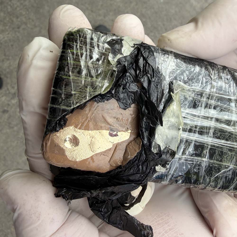 Tijdens de inspectie ontdekten douanebeambten een pakket met een goudkleurige staaf, verborgen in een fabrieksholte onder de afdekking van het stuur in de cabine. Uit deskundig onderzoek bleek dat het ging om 14-karaats goud met een gewicht van 1.707,97 gram en een waarde van €128.815,10.