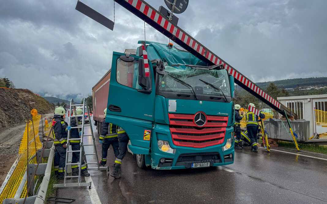 De impact van de aanrijding was dusdanig groot dat twee betonnen pijlers volledig uit hun verankering werden gerukt. Het bovenste deel van de cabine van de vrachtwagen raakte zwaar beschadigd.